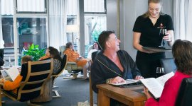 Goede en vriendelijke sfeer en geen onderscheid onder elkaar, zo wel gasten als personeel en eigenaar.